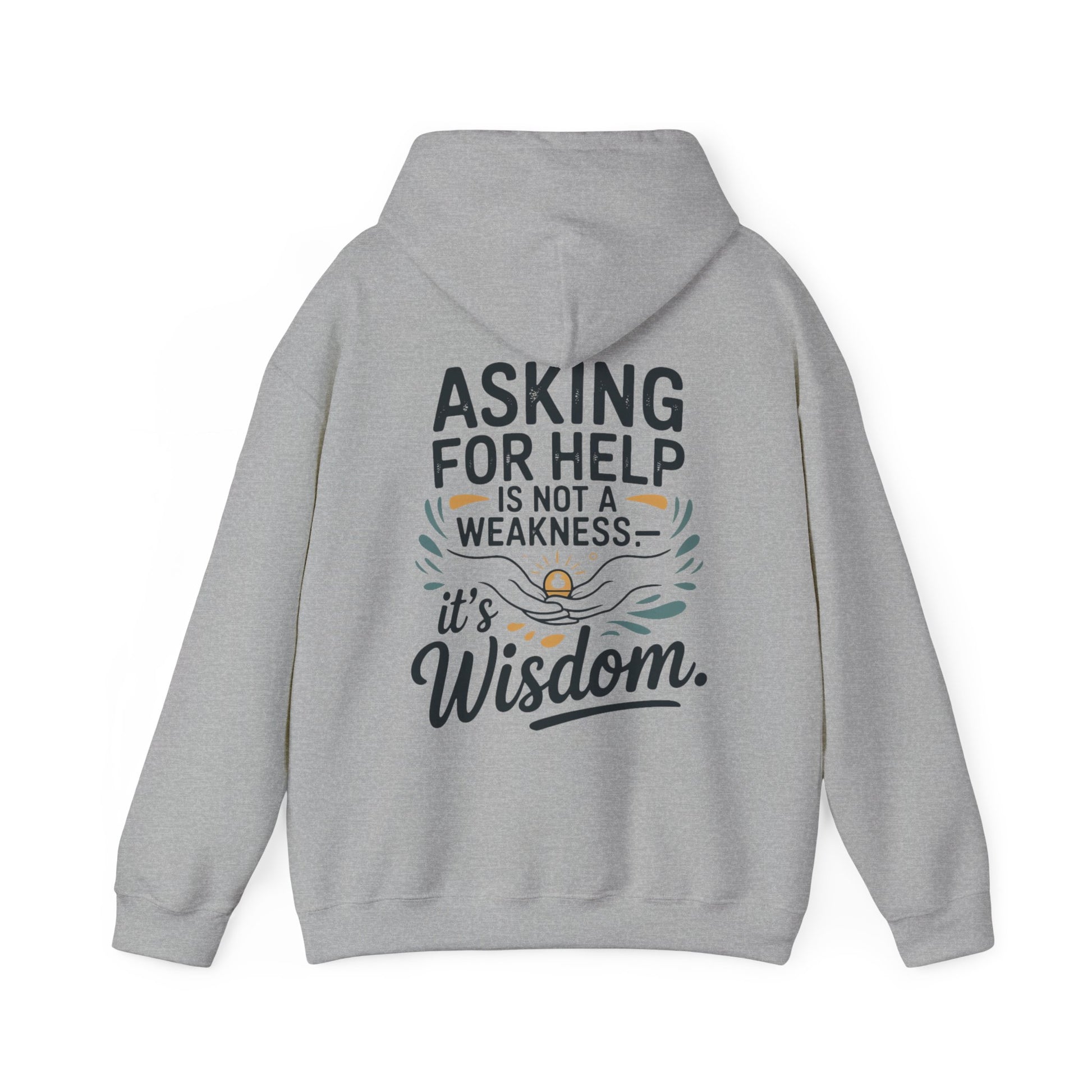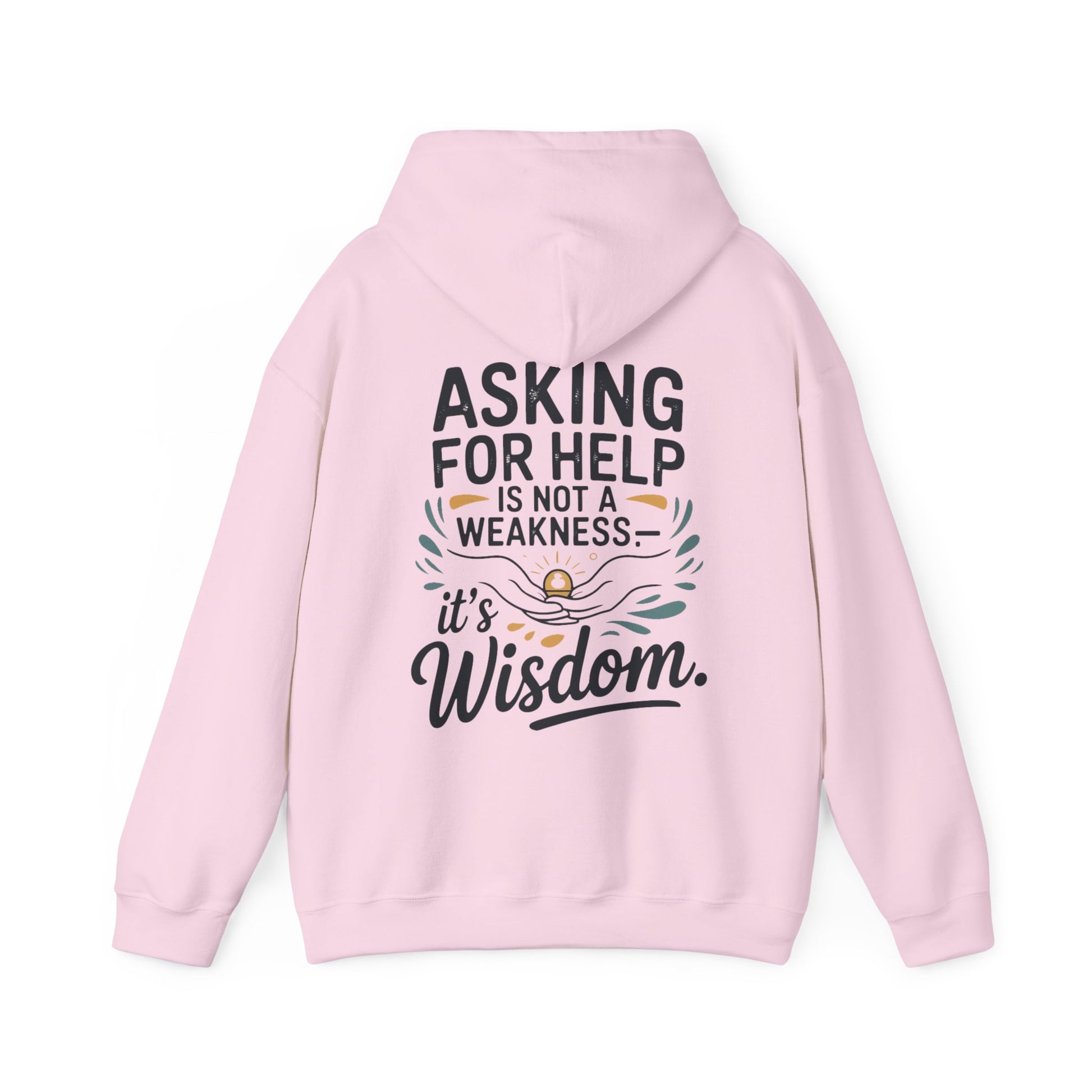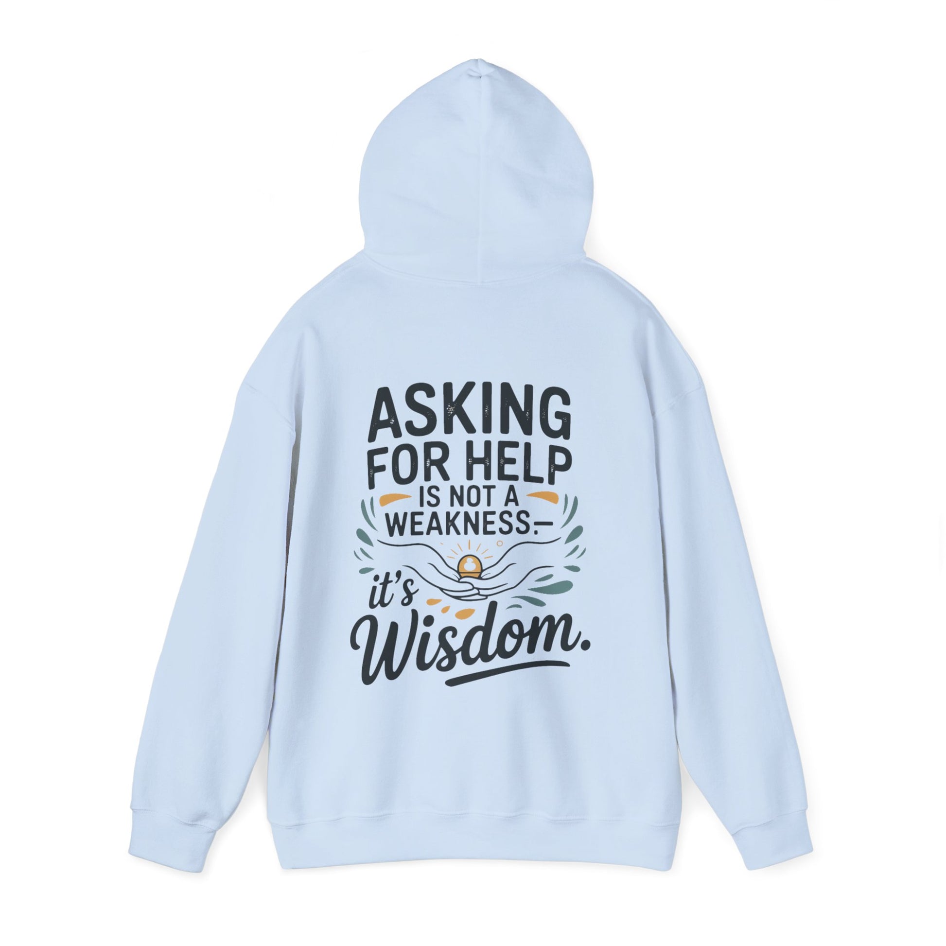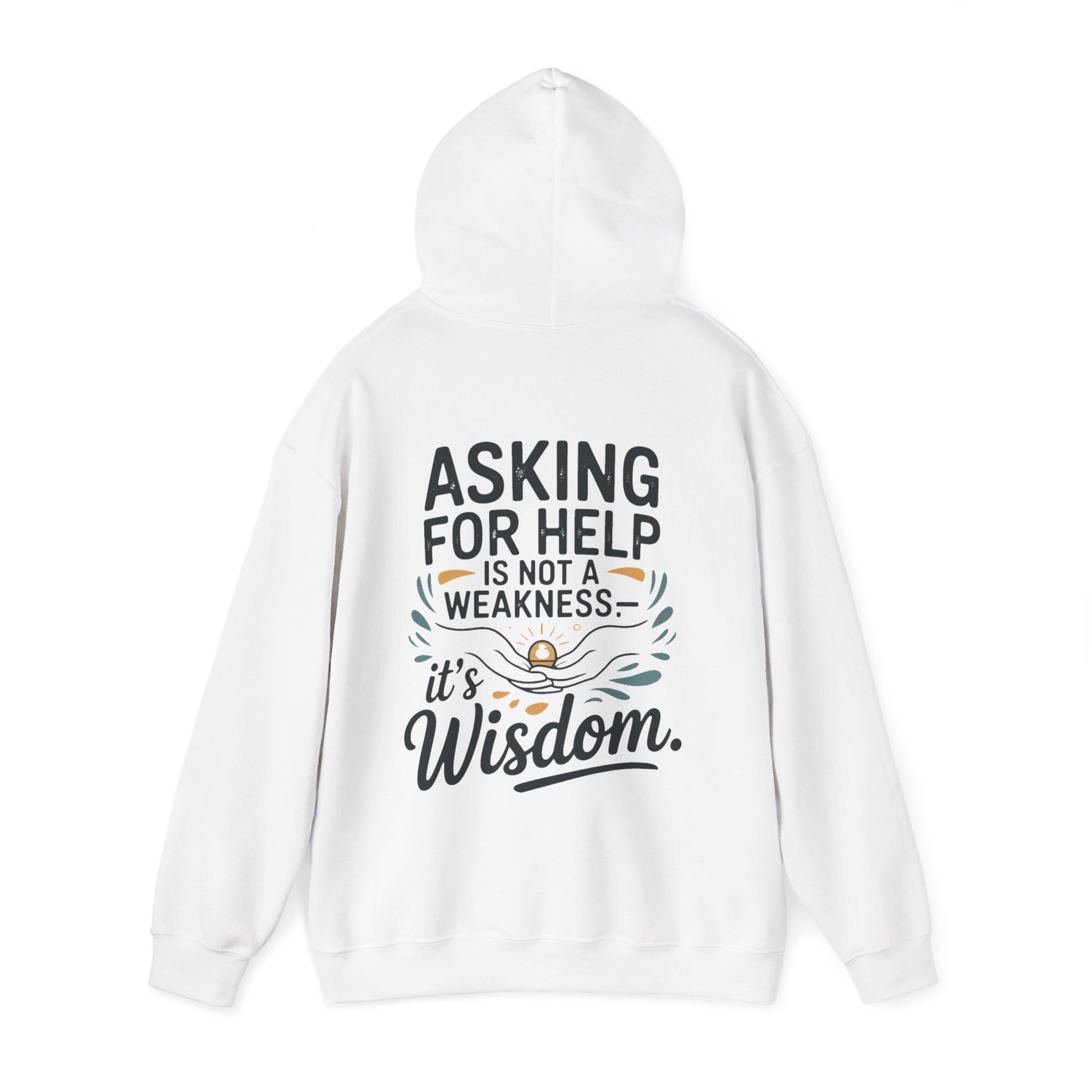 This cozy hooded sweatshirt carries a quiet, empowering message. Soft and warm, it lets you move through cold mornings and long evenings while wearing words that encourage vulnerability: “Asking for help is not a weakness — it’s wisdom.” The design sits small on the chest and expands across the back with gentle hand-lettering and subtle decorative accents, creating a calm, thoughtful look. The roomy kangaroo pocket and double-lined hood add practical comfort, while the neutral white base keeps the focus on the message. Wear it to support a friend, to ground yourself on a slow weekend, or to start conversations that matter.