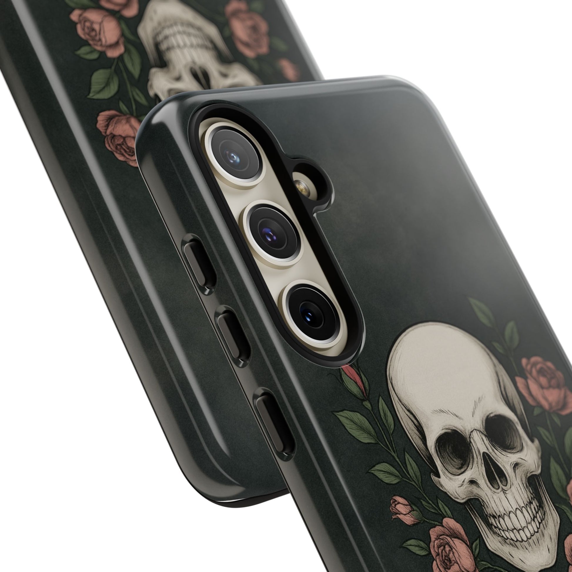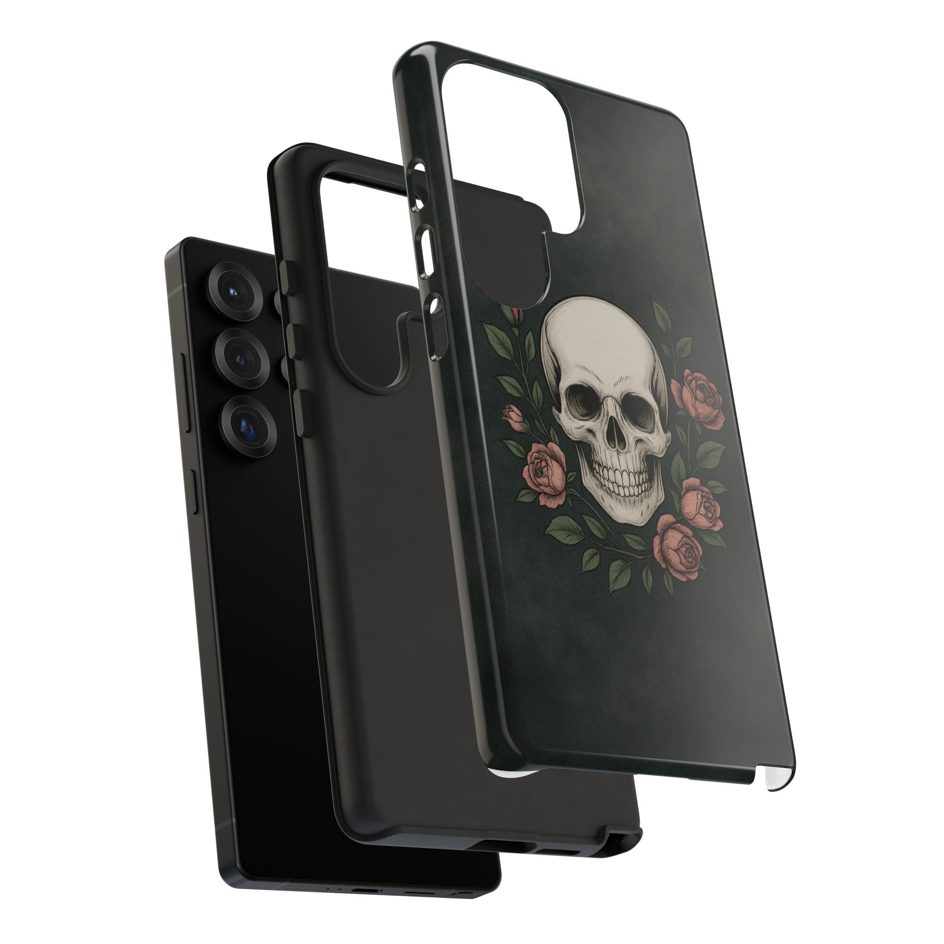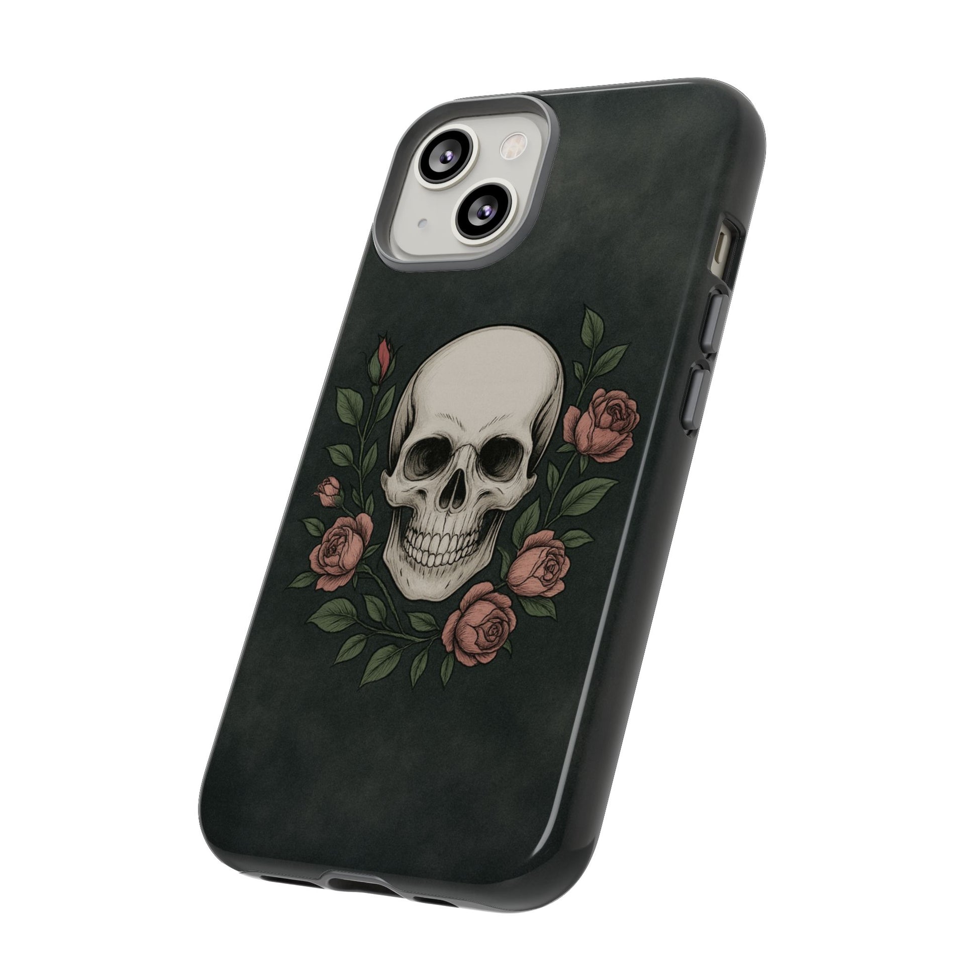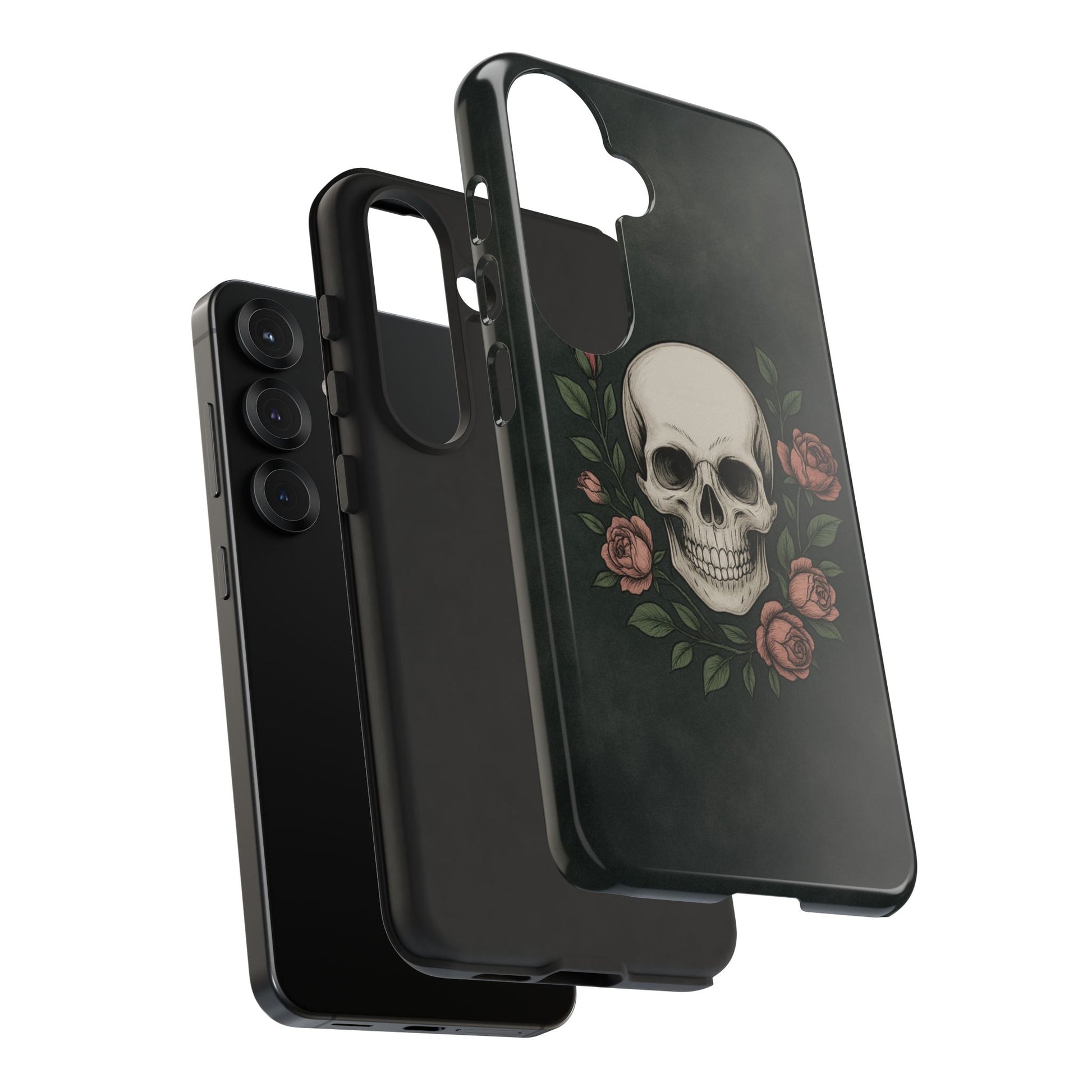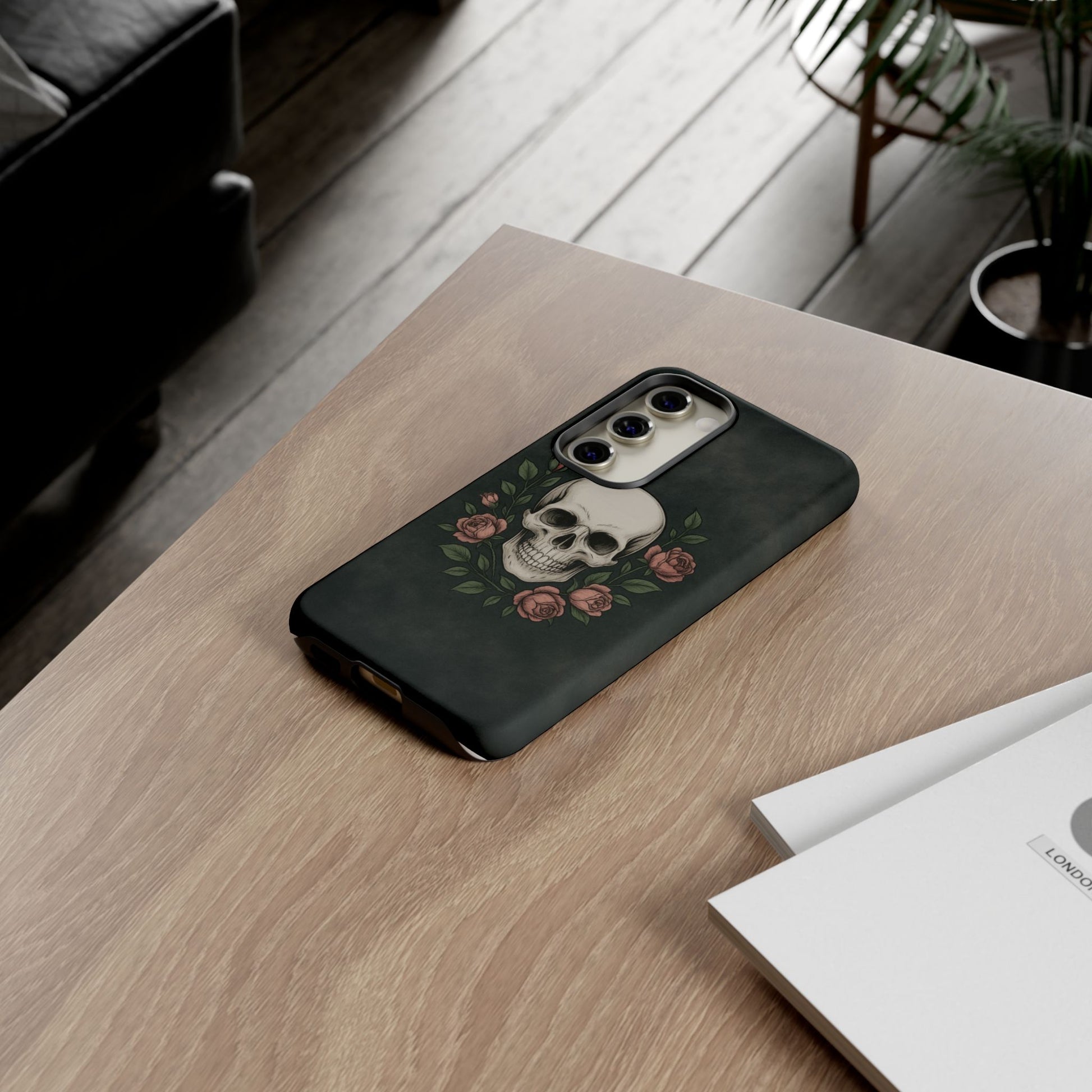 This slim, dual-layer phone case pairs gothic charm with everyday protection. A hand-drawn skull sits framed by delicate roses against a deep, textured background — moody and artful, not loud. The glossy or matte finish keeps the artwork vivid while the TPU silicone liner cushions sharp impacts. It tucks into daily life effortlessly: slips into pockets, withstands commuting scrapes, and supports wireless charging when you need a quick top-up. For those who lean toward dark, vintage-inspired style, it reads like a small talisman for your phone — subtle, personal, and built to last.
